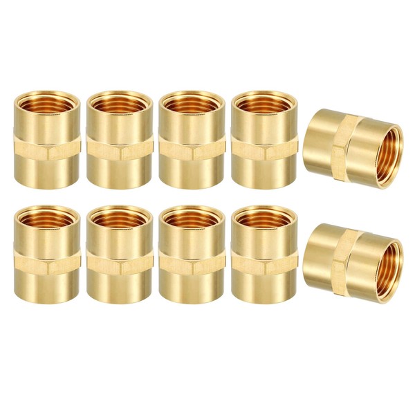 PATIKIL Brass Pipe Fittings Coupler, 2Pcs 1/2" x 1/2" NPT Female Thread Brass Hex Nipple Coupling Reducer Adapter Tubing Connector Adaptor for Water, Air, Oil, Gas Line System