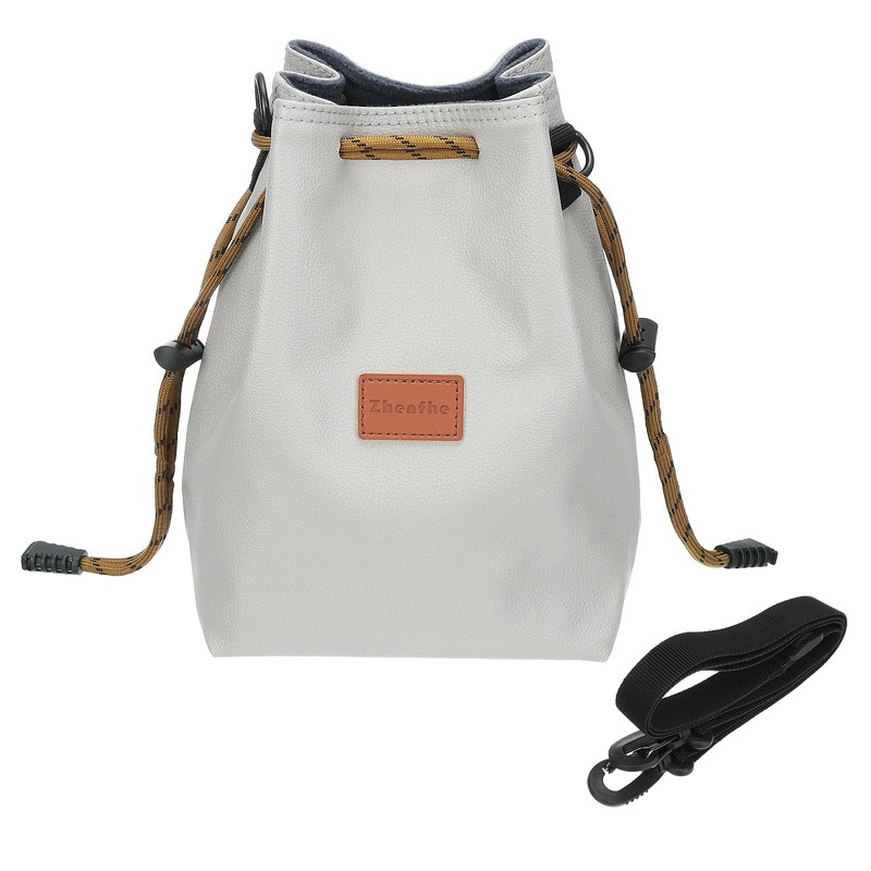 PATIKIL Camera Lens Pouch, L Size Drawstring Lens Case PU Waterproof Camera Lens Handbag Camera Bag with Adjustable Shoulder Strap for DSLR Camera Lens, Grey
