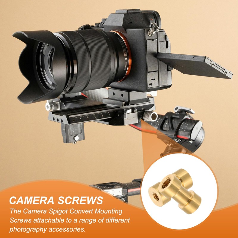 - Application - The Camera Spigot Convert Mounting Screws attachable to a range of different photography accessories such as common tripod, monopod, rod rail system, ball heads, wireless flash receivers, triggers, hotshoe/coldshoe adapters, studio Light stand, and back.