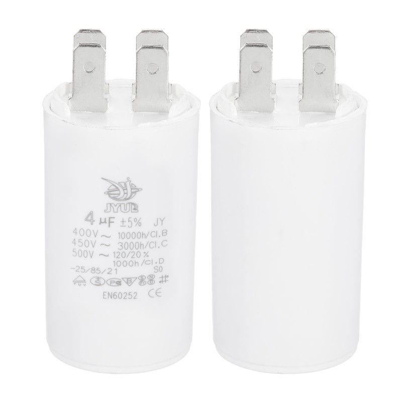 - Specification: Model: CBB60; Material: Polypropylene Film Plastic Shell; Lead End: 4 Pins; Tolerance: ±5%; Rated Capacity: 4uF; Climatic Category: -25/85/21; Pack of 1 Pcs Run Capacitor, Each capacitor is paired with four Sheath Spring