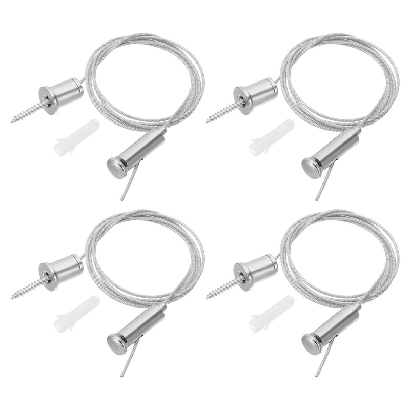 - Color: Chrome; Material: Carbon Steel; Surface Finish: Electroplating; Rope Length: 1m/3.3ft; Range of Application: 1.2-2.0mm Steel Wire Rope; Packing List: 4 Sets x Ceiling Hanging Wire Cable Kit
