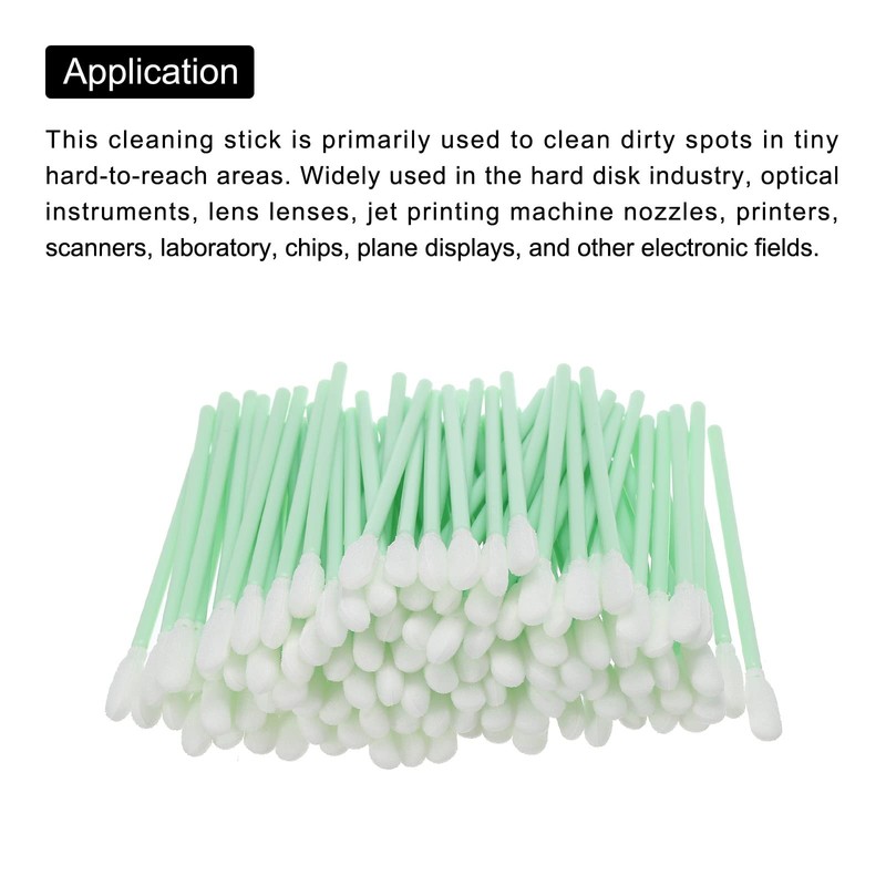 This cleaning stick is primarily used to clean dirty spots in tiny hard-to-reach areas. Widely used in the hard disk industry, optical instruments, lens lenses, jet printing machine nozzles, printers, scanners, laboratory, chips, plane displays, and other electronic fields.