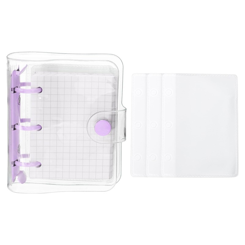 PATIKIL Clear 3 Ring Binder Cover, PVC Notebook Binder Mini Refillable Loose Leaf Folder Planner with 80 Sheets Paper, Purple