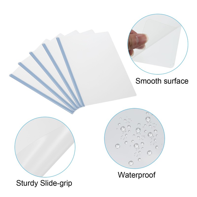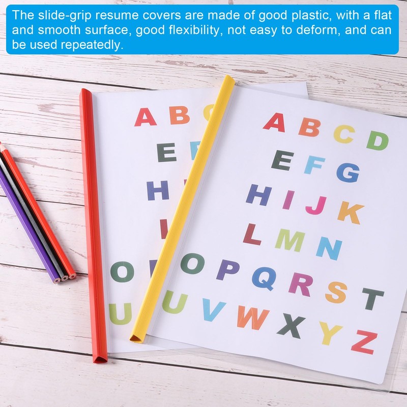 - Advantage: The slide-grip resume covers are made of good plastic, with a flat and smooth surface, good flexibility, not easy to deform, and can be used repeatedly. The slide-grip has large capacity which can hold many papers, and is not easy to fall off. The slide-grip resume covers can clearly display the contents of the report, with high transparency, which is conducive to finding the required documents.