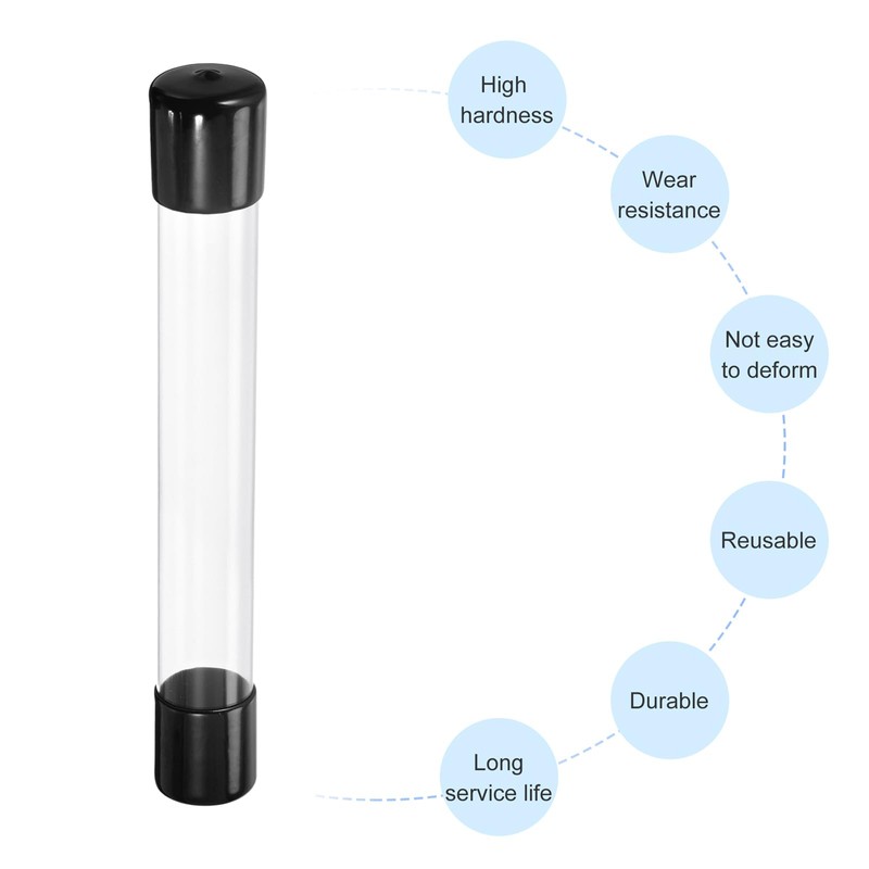 - The transparent rigid tube is made of polycarbonate with high impact-resistant, and high transparency, high hardness, wear resistance, not easy to deform, it can display the stored items clearly. It is easy to store small items by covering the rubber cap; Taking off the cap, you can use the tube as water tubes for fish tanks and aquariums or other industry pipes.