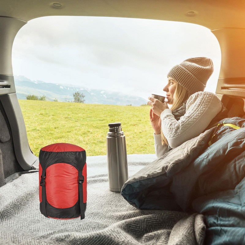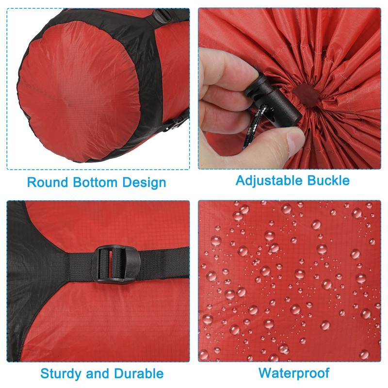 - Color: Red; Capacity: 8L; Size: 17 x 37cm / 6.7 x 14.6 inch (D*H); Packing List: 1 x Compression Stuff Sack