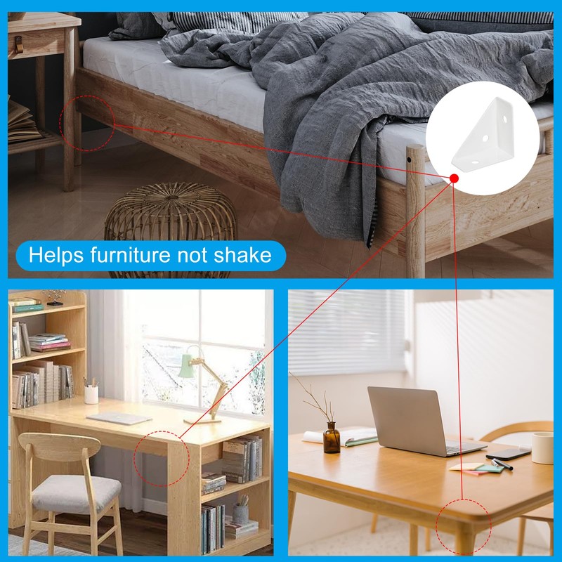 - Application: These thickened cold rolled steel angle brackets can be used on any furniture that needs reinforcement, such as bookcases, tables, cabinets, shelves, drawers, dressers, bed frames, etc. You can easily complete the installation with basic DIY tools.