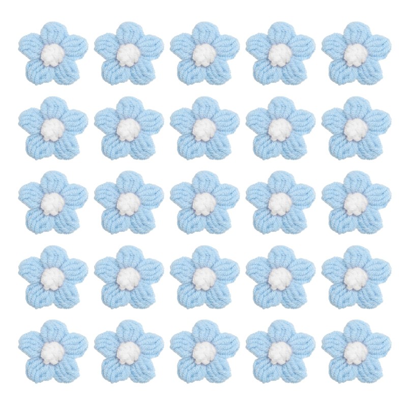 - Color: Water Blue/Creamy White; Material: Yarn; Size: 40 x 40 x 10mm / 1.57 x 1.57 x 0.39 Inch (L x W x H); Packing List: 50 Pcs Crochet Flowers