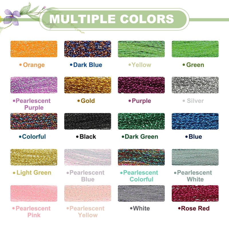 The fly tying thread attracts fish with a sparkling effect, which looks like the color and movement of small fish to enhance the lure's realism and make more bites, Its vibrant colors and shimmering appearance significantly boost catch rates. These durable threads withstand tension and friction during fishing, extending their lifespan.