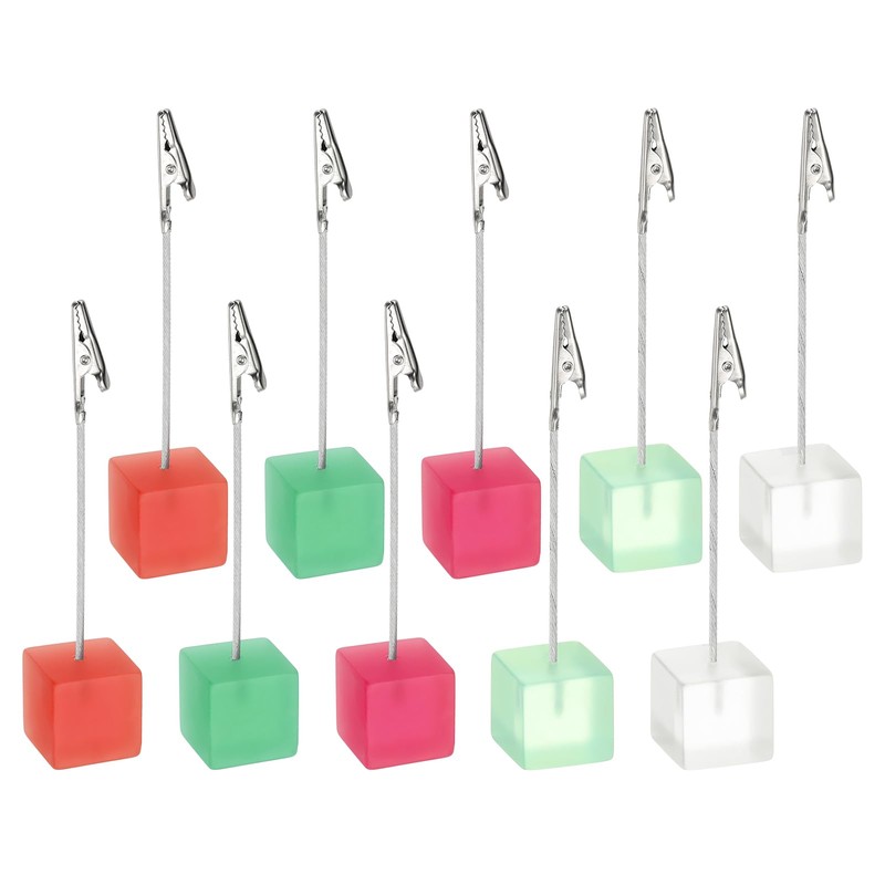 PATIKIL Cube Resin Card Picture Memo Holder, 10Pcs Desktop Picture Holders with Clip Table Number Holders Resin Base for Pictures Note Card Paper, Lake Green Orange Pink Sky Blue Clear