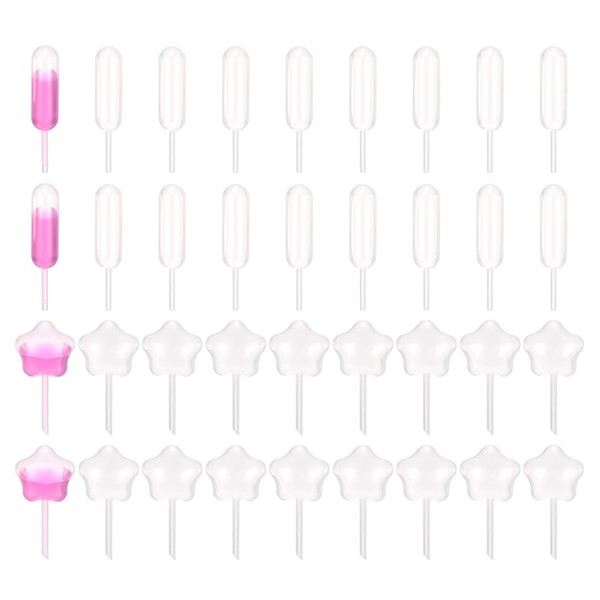 - Specification: Capacity: 4ml; Material: Plastic; Length: 60 mm/2.4 Inch(Dropper Shape);50mm/2 Inch(Star Shape); Color: Clear; Packing List: 100 Pcs x Cupcake Pipettes