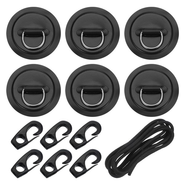 PATIKIL D-Ring Patch, 6 Pcs Stainless Steel D-Ring PVC Patch Pad No Glue Include with 8.2ft Elastic Cords and Hooks for Inflatable Boat Paddle Board Canoe Surfboard, Black
