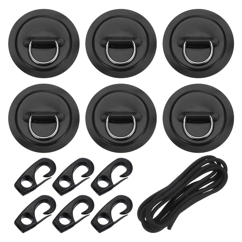 - Application: A Round D ring pad is suitable for Inflatable boats, raft, kayaks, canoes, surfboard, stand-up paddle boards, etc. Use these PVC D-Ring Patches to add extra tie-down points to your inflatable boards, making it easier to secure rope, cargo, and paddles, or attach a fixed kayak seat. The cord hook is suitable for rescue ropes, baskets, cargo, outdoor boat anchoring