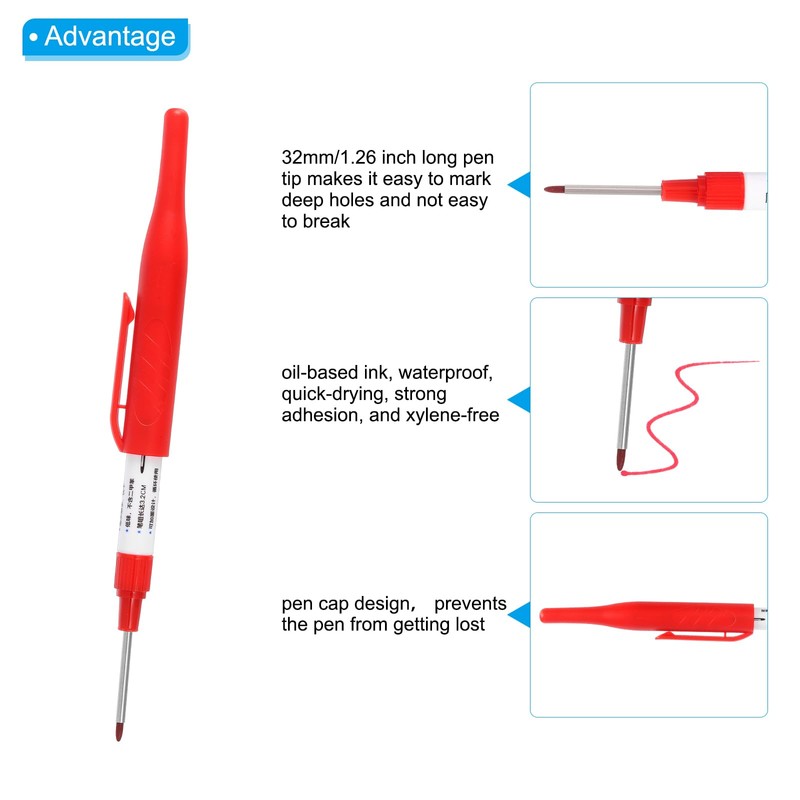 - Advantage: 20mm/0.79 inch long pen tip makes it easy to mark deep holes or hard-to-reach places. Smooth mark with oil-based ink, waterproof, quick-drying, and strong adhesion.
