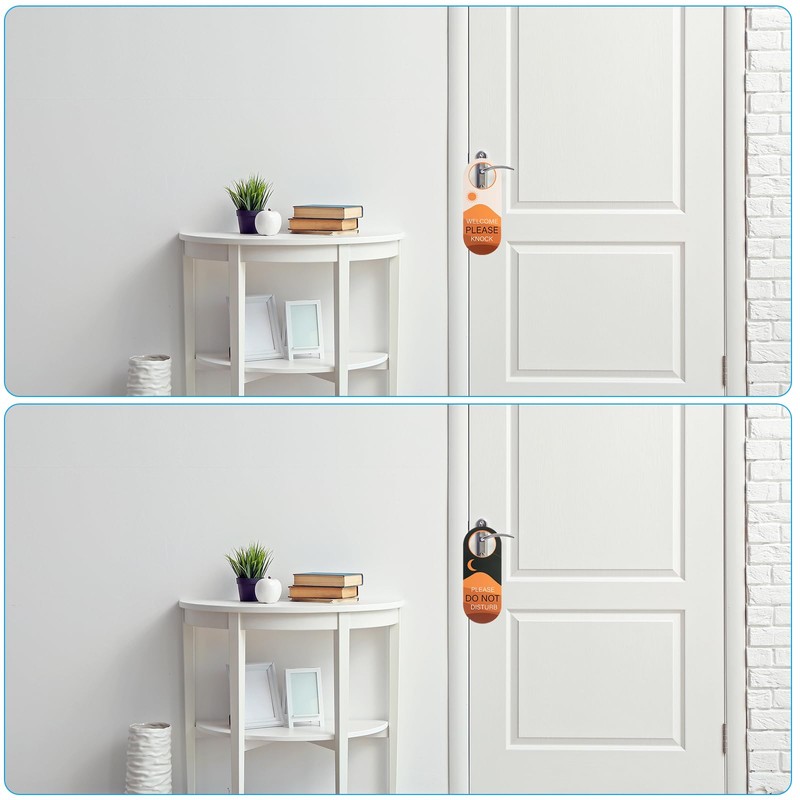 - Advantage: The sign is scratch-resistant, waterproof, not easy to crack and can be used for a long time, multicolor background and white and black letters. Our reversible hanger sign has Please Do Not Disturb on the front side to ensure your quiet and Welcome, Please Knock on the back side.