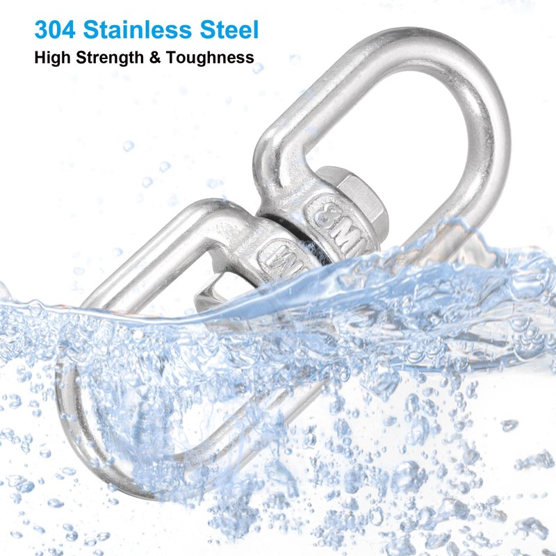 - Advantage: Made of 304 stainless steel, solid connections with a polished finish, strong and durable, rust-proof. Eye to Eye swivel link ring connector, 360 free rotation to prevent ropes or chains from tangling