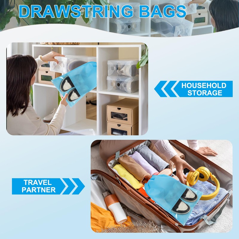 - Advantage: Made of non-woven material, lightweight and portable, sturdy and durable, dustproof, tear-resistant, and not easy to break. It comes with a convenient drawstring closure, allowing you easy to put and take, and can be stored by hanging or placed flat in drawers, racks, or closets. They can also be utilized to separate within bags or suitcases while traveling or on the go, providing both organization and protection