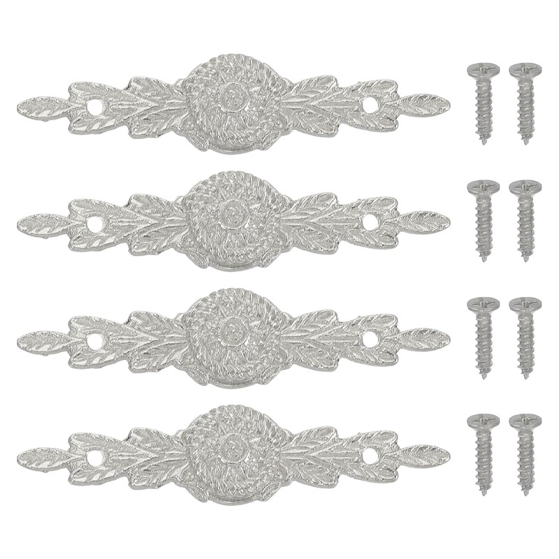 PATIKIL European Flower Handle Pull 2.91x0.63, 4 Pcs Drawer Handles with Screws for Cabinet Wooden Box Case Wardrobe Cupboard Dresser Furniture Hardware, Silver Tone