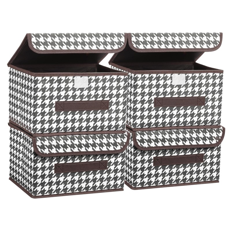 PATIKIL Fabric Collapsible Storage Bin 10.2 x 7.5 x 6.3 Inch, 4 Pcs Foldable Storage Box Cube with Lids and Handle Organizer Container for Home Bedroom Closet Clothes, Black White Grid