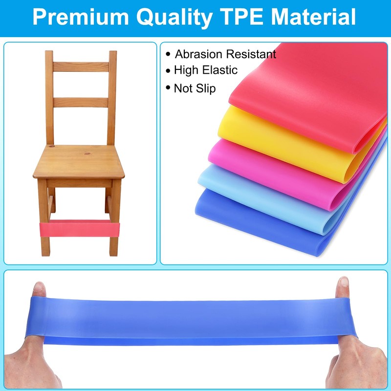 - Color: Light Blue, Material: TPE Material, Size: 12 × 2 × 0.02" inches/ 300 × 50 ×0.6 mm (L*W*T), Packing List: 10× Chair Bands