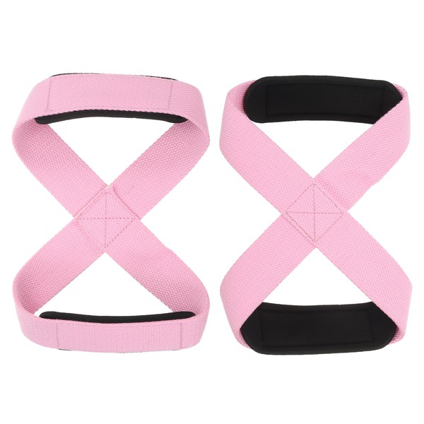 PATIKIL Figure 8 Lifting Strap, 2 Pack Weightlifting Wrist Wraps Dead Lift Padded Grips 8 Loop Weight Lifting Straps for Fitness Power Strength Training, Light Pink, L