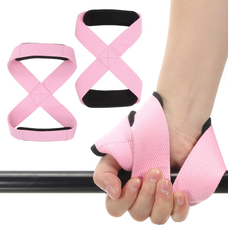 PATIKIL Figure 8 Lifting Strap, 2 Pack Weightlifting Wrist Wraps Dead Lift Padded Grips 8 Loop Weight Lifting Straps for Fitness Power Strength Training, Light Pink, L