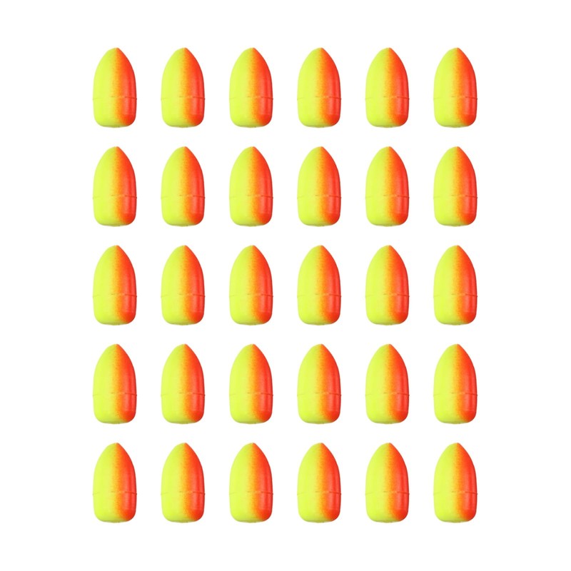 - Material: EVA Foam; Color: Red-Yellow; Overall Size: M:16.5 x 9mm / 0.65 x 0.35 inch; Packing List: 30 x Floats Fishing