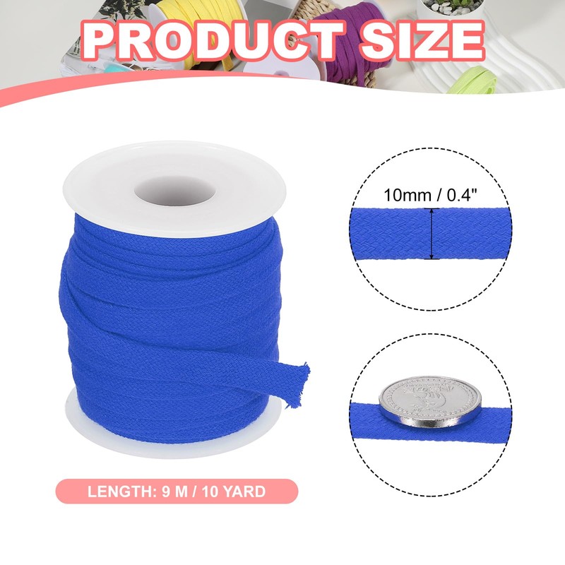 - Color: Blue; Length: 9m / 10 yard; Width: 10mm / 0.4 inch; Material: Cotton; Packing List: 1 Roll x Flat Drawstring Cord