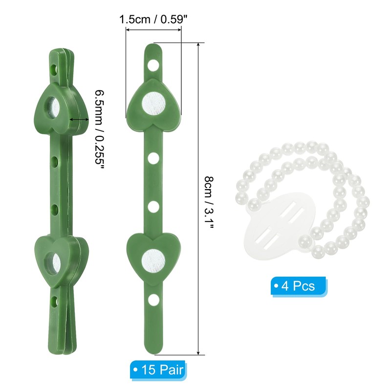 - Total Length: 8cm/3.1-inch; Total Width: 1.5m/0.59-inch; Packing List: 15 Pairs x Corsage Brooches, 4 Pcs x Elastic Pearl Wrist Bands