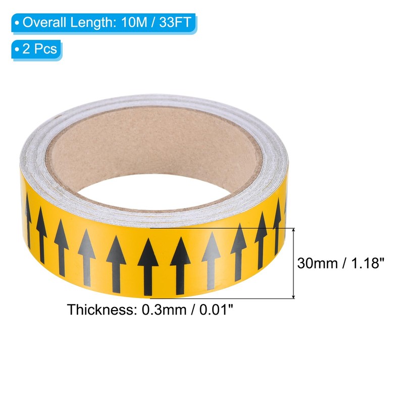 PATIKIL Flow Arrow Tape, 2 Roll Polyethylene Pipe Marking Sticker with Reflective Strip, Waterproof Heat Resistant, for Pipe Flow Directional Identification, 1.2 Inch x 33 Ft, Yellow/Black