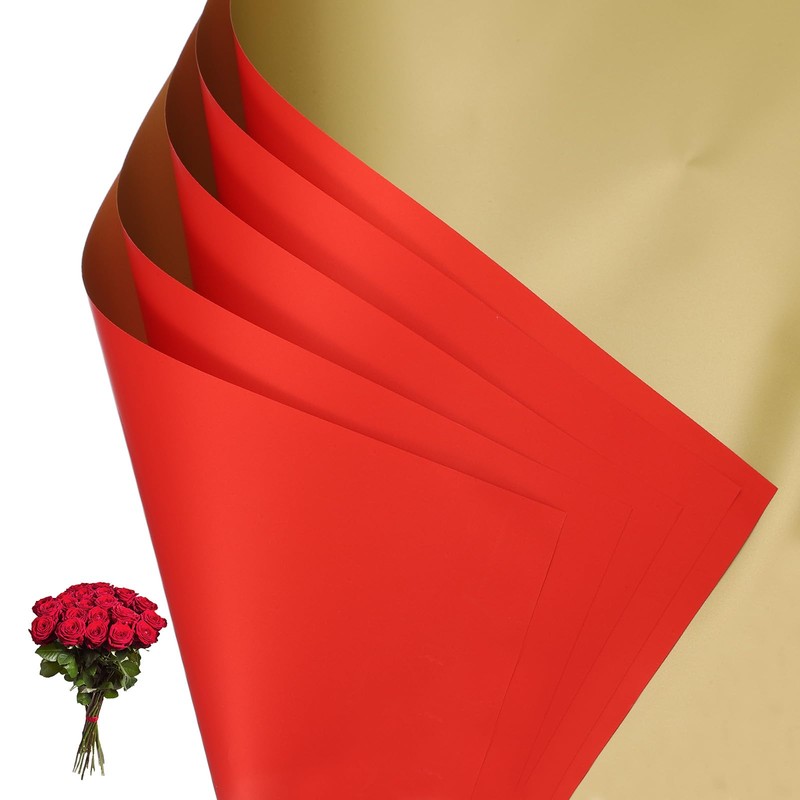 - Color: Red/Gold; Material: Pearlescent Film; Length: 56 x 56 cm / 22 x 22 Inch; Packing List: 20 Sheets x Flower Wrapping Paper