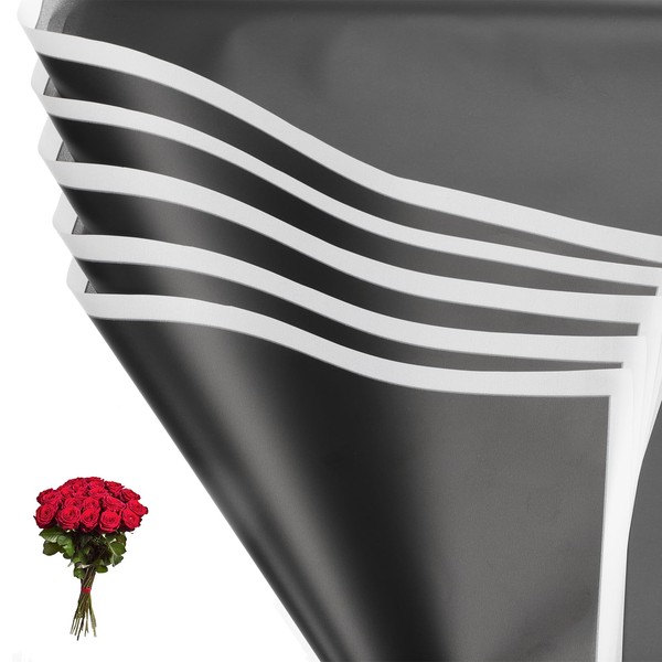 PATIKIL Flower Gift Wrapping Paper, 20 Sheets White Edge Waterproof Bouquet Papers Wrap Florist Supplies Packaging Floral Papers for Wedding DIY Craft Valentine Mother's Day, Black