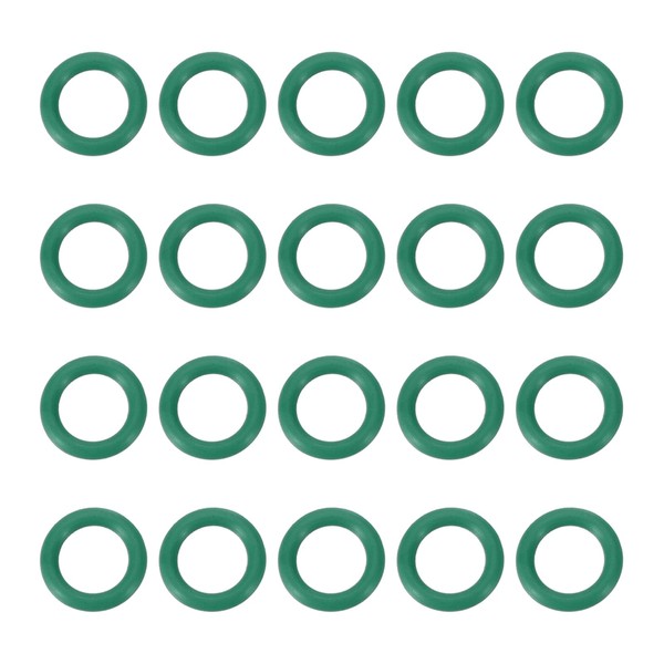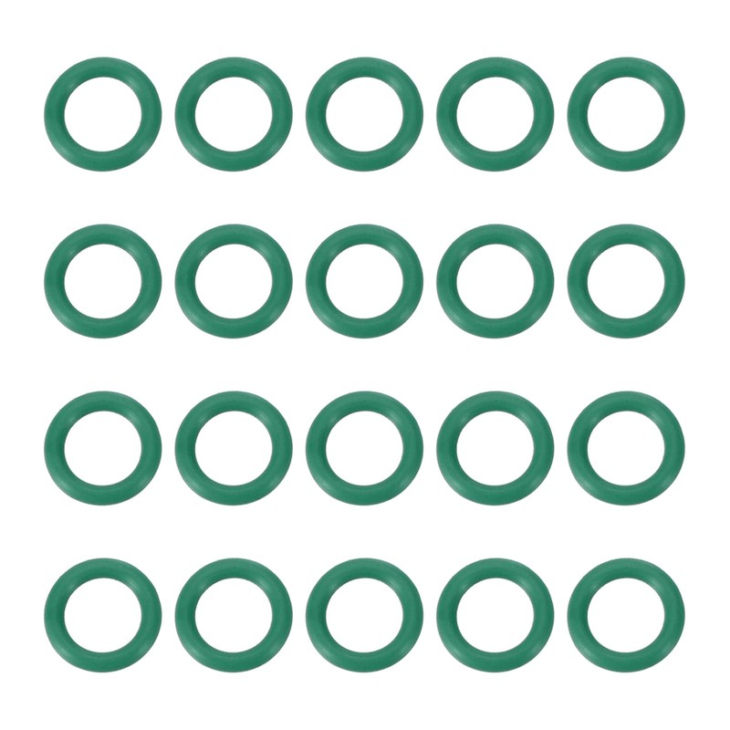 - Outer Diameter: 8.5 mm / 0.33 inch; Inner Diameter: 5.5mm / 0.21 inch; Wire Diameter: 1.5 mm / 0.06 inch; Temperature Range: -4℉ (-20℃) to 464℉ (240℃); Maximum Pressure: 25 MPA / 3625 psi, Material: Fluorine Rubber; Color: Green; Packing List: 20 Pcs × Fluorine Rubber O Ring