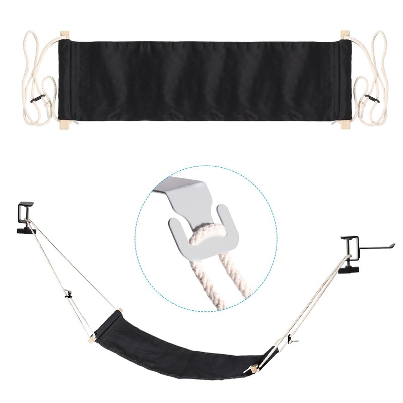 - Application: The desk foot hammock is a comfortable and ergonomic footrest designed to support your feet while working. The compact and lightweight design makes it easy to carry and store when not in use, making it great for office or home use. Improve your work experience and increase your productivity by adding the foot sling to your workspace.