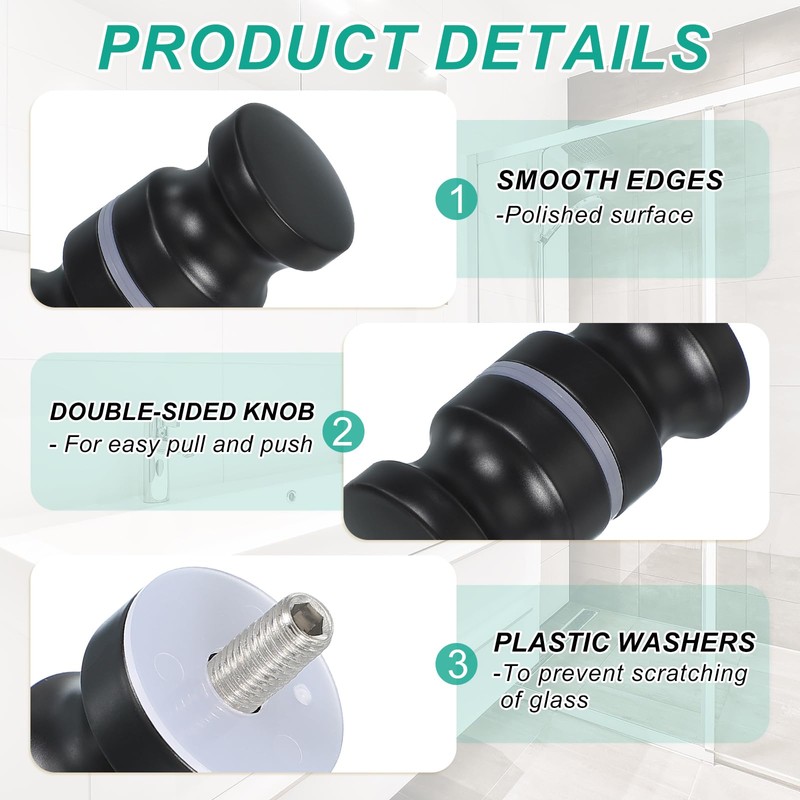 - Instruction: Easy to install, simply drill a hole in your glass door, then secure the handle knob with a screw. equipped with a gasket to prevent the metal parts from coming into direct contact with the glass, thereby avoiding scratches on the glass door(Suitable for glass door hole diameter 8 mm / 0.31 Inch)