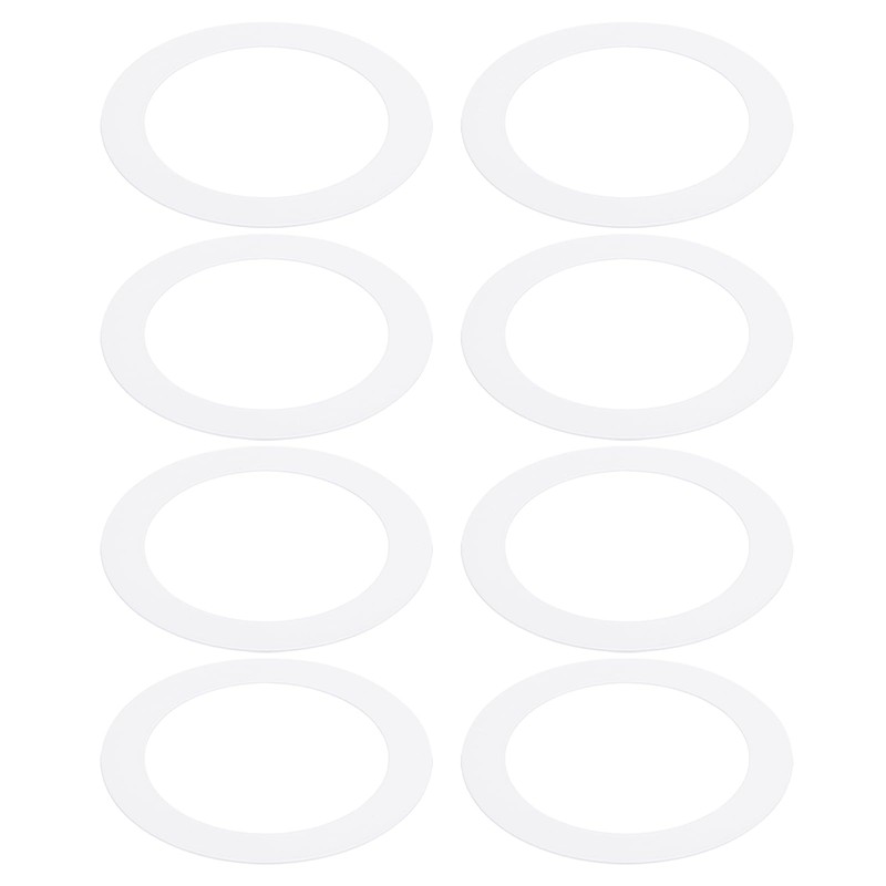The goof rings for recessed lights come in 8 packs, which measure 8.07 x 6.3 x 0.04inches/205 x 160 x 1mm(Outer Diameter*Inner Diameter*Thickness), Color: Matte Finish White; Material: Carbon Steel.