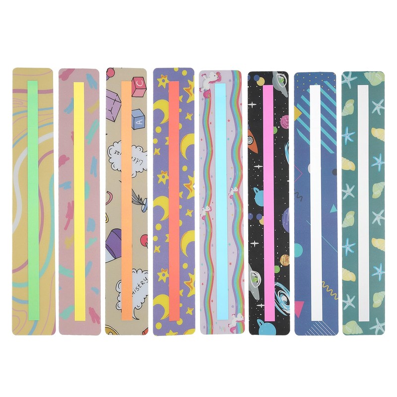• Application: These reading guide strips are suitable for individuals with difficulty focusing while reading, as the color helps maintain attention and helps them overcome dyslexia and focus their concentration. Teachers can also use them in the classroom to assist little ones with reading and reduce visual stress to improve their reading skills.