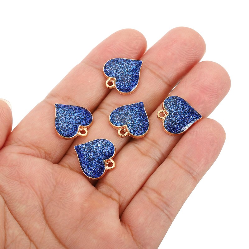 - Color: Blue, Gold Tone; Material: Enamel, Metal; Hanging Hole Diameter: 1.5mm / 0.06 inch; Size: 17 x 16 x 3mm / 0.67 x 0.63 x 0.12 inch(L*W*H); Packing List: 30 x Metal Drops Charm