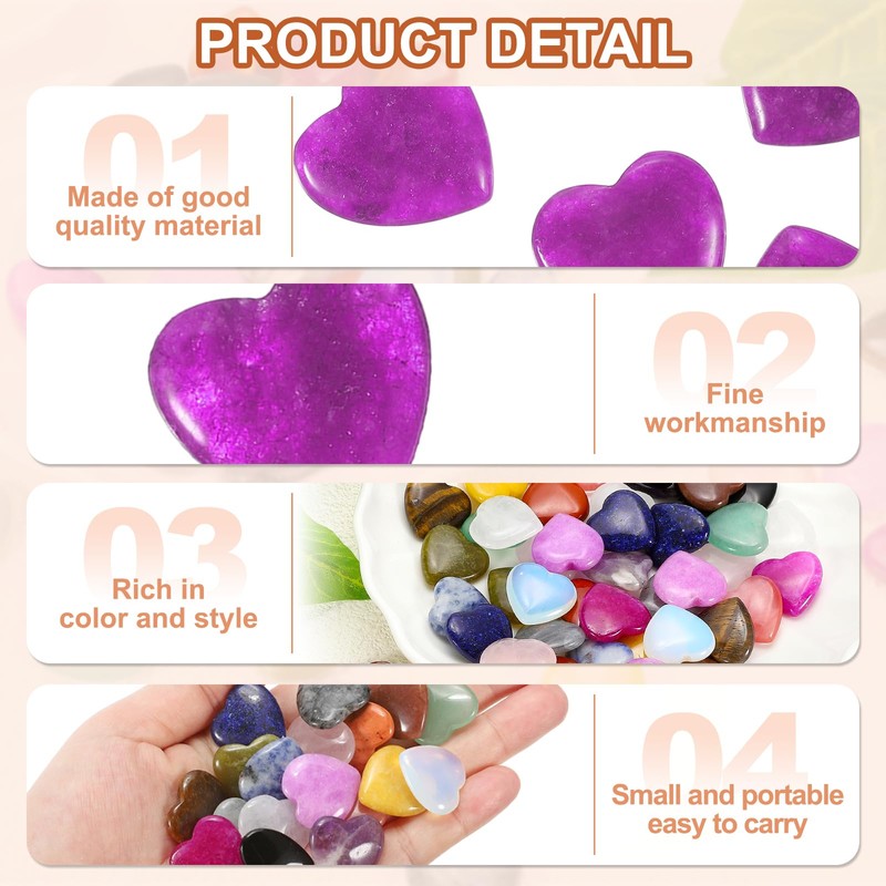 - Easy to Use: Each crystal is elegantly shaped into a heart, symbol of love, making it an amazing gift for loved ones or a lovely addition to your meditation space.