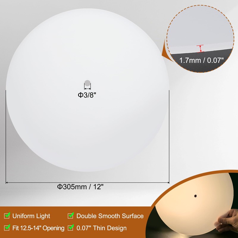 - Advantages: Made of 0.07 inch (1.7mm) thin DOUBLE SIDED double smooth white acrylic sheet with a 3/8" (10mm) center hole. This diffuser has good light transmittance, strong stability, durability and heat resistance, can withstand the heat generated by the lamp and has a long service life.