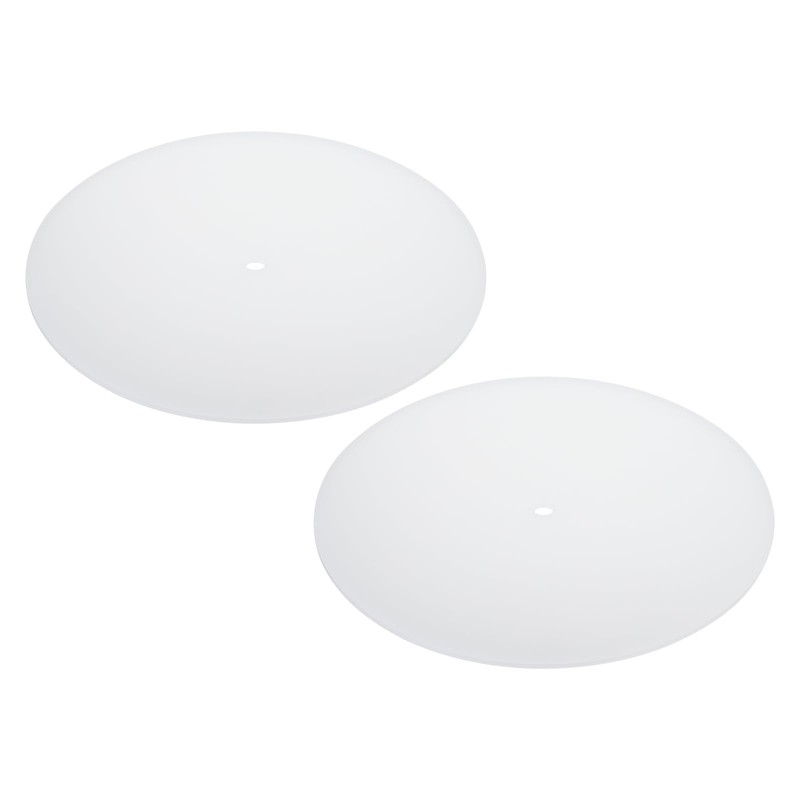 Advantage: Made of 0.07 inch (1.7mm) thin DOUBLE SIDED double smooth white acrylic sheet with a 3/8" (10mm) center hole. This diffuser has good light transmittance, strong stability, durability and heat resistance, can withstand the heat generated by the lamp and has a long service life.