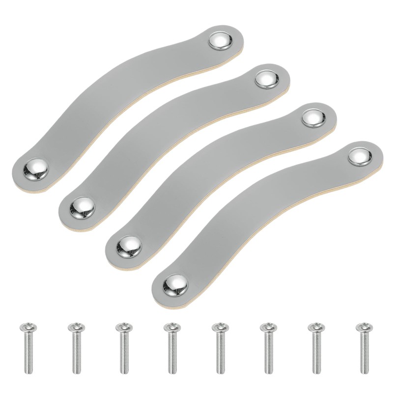 PATIKIL Leather Drawer Pulls, 4 Pcs Leather Handle Double Hole Cabinet Dresser Knobs with Screws for Bathroom Kitchen Dresser Cupboard Door, Gray