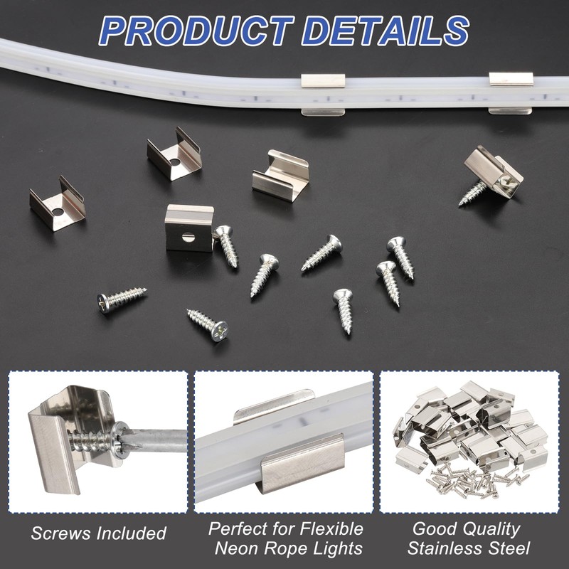 These stainless steel brackets offer several advantages, including their compatibility with popular LED strip light models, an easy installation process and the possibility of cable management. They can be used both indoors and outdoors making them suitable for various applications. Whether you want to enhance the atmosphere in your home, decorate outdoor areas, or add vibrant lighting in commercial settings, these clips are a practical solution.