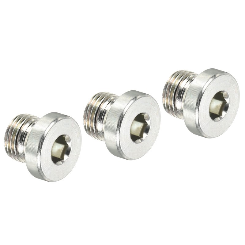 - Specifications: Color: Silver Tone; Material: 45# steel, zinc plated; Screw Size: M10*1 mm; Internal Hex Width: 5 mm; Overall Height: 14 x 12 mm(D*H)