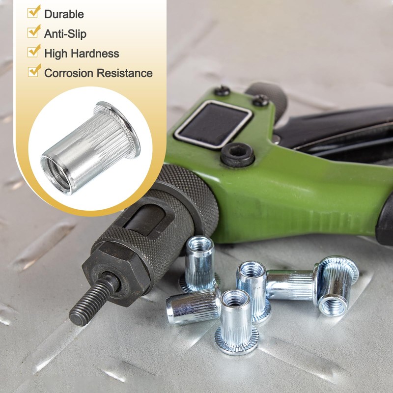 • Advantage: Made of 304 stainless steel, the rivet nuts have high hardness and great corrosion resistance, which are durable and non-deformable. Metric rivet nuts are knurled having a flat and deep thread, which are easy to fix and anti-slip effective