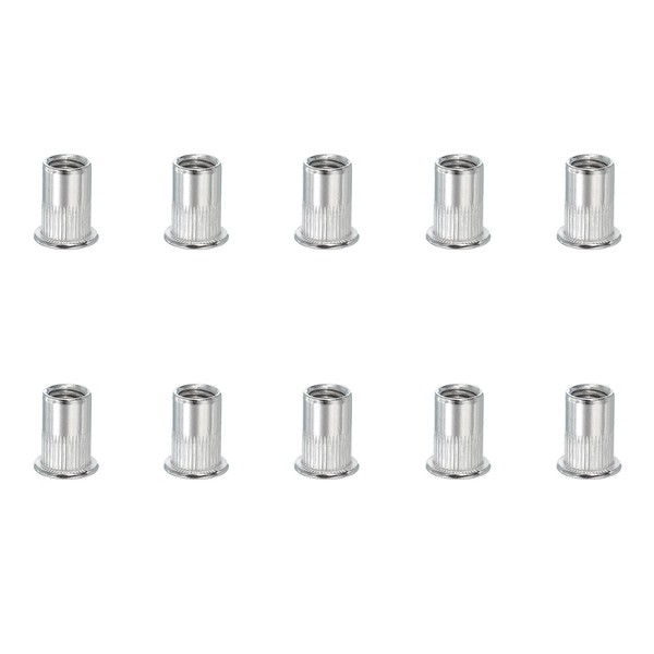 PATIKIL M10 Rivet Nuts, 10 Pcs 304 Stainless Steel Knurled Flat Head Threaded Insert Nuts Metric Rivet Nut Assortment Kit for Automotive Furniture