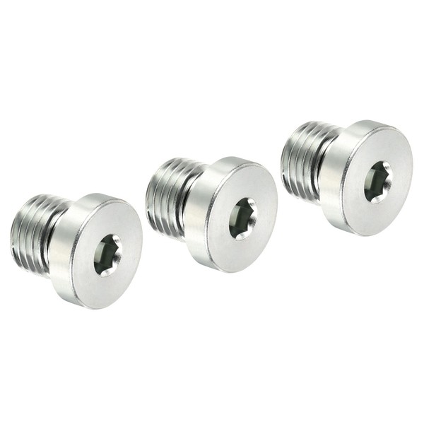 PATIKIL M14*1.5 Internal Hex Head Pipe Fitting Plug, 3 Pack Male Thread 45# Steel Socket Plug with Sealing Ring for Terminate Pipe Ends