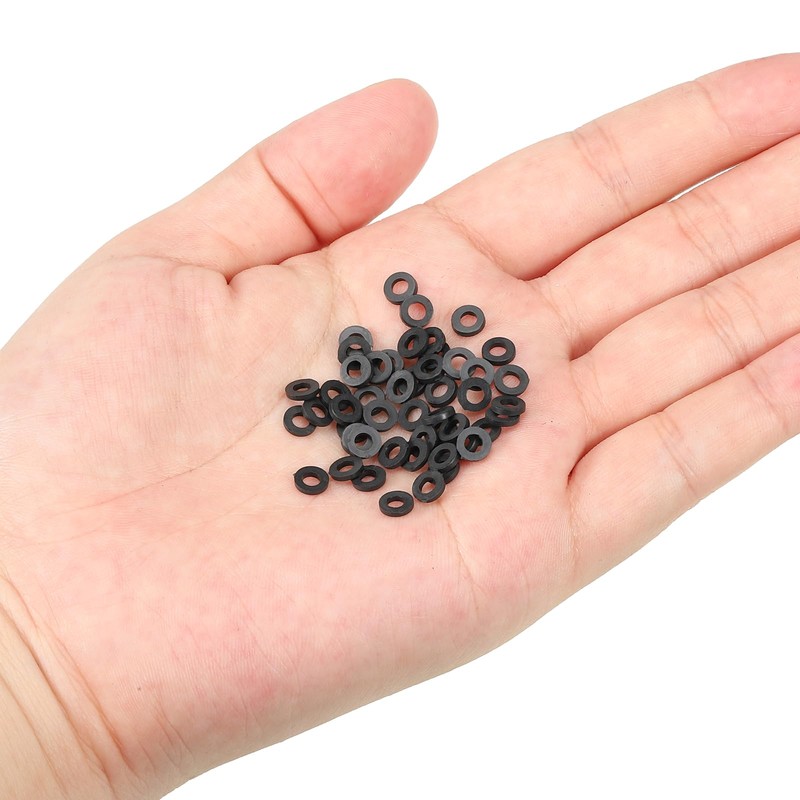• Color: Black; Material: Nylon; Inner Diameter: 2.5mm / 0.1 inch; Outer Diameter: 5mm / 0.2 inch; Thickness: 1mm / 0.04 inch; Packing List: 80 x Nylon Flat Washers