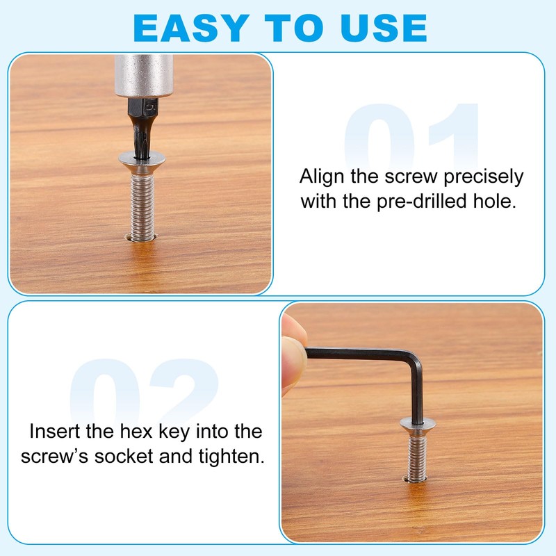 - Installation: Align the screw carefully with the pre-drilled hole or threaded insert. Insert the appropriate hex key into the socket and tighten securely. Apply even pressure to prevent socket stripping. (Note: Before use, confirm that the screw dimensions and material meet your project requirements.)