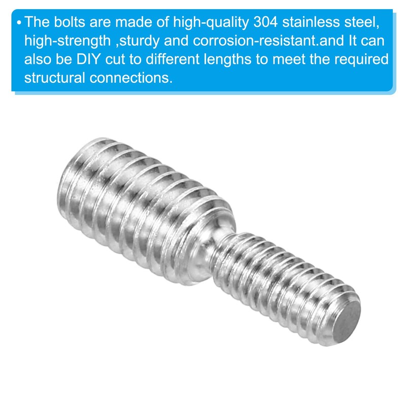 - Material: 304 stainless steel; thread size: M4 x 0.7 to M6 x 1; total length: 20 mm/0.79 inches; package contents: 10 x double-ended threaded screw bolts